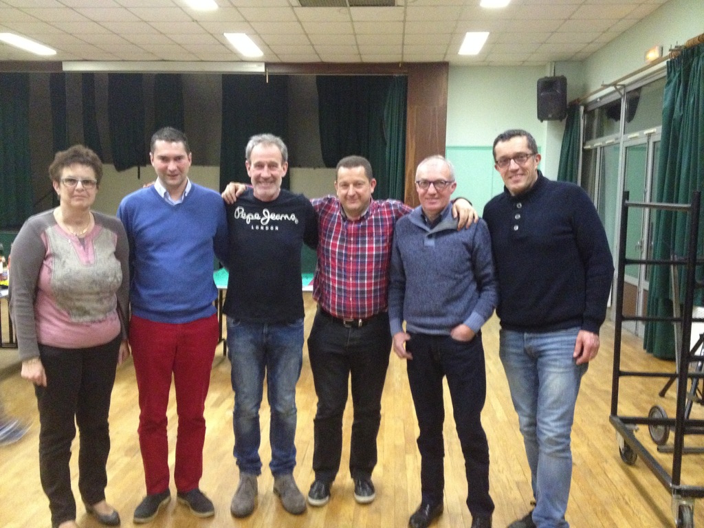 Vendredi soir le concours de belote de l'US ARON a réuni 56 équipes. Une des équipes favorite l'a emporté. Il faut le dire, avec ces deux éléments l'US ARON avait une attaque de feu dans les années 90. J'ai cité le tandem LEBRUN/MOTTAIS. A la 2ème place un ex gardien de CFA 2, DAVID, transféré récemment à l'US ARON vétéran (le montant du transfert et tenu secret). Et à la 3ème place Mike notre Mike Gaiver dirigeant, et ancienne gloire de l'US ARON B. Nous remercions les sympatisants de l'US pour leur participation. A l'année prochaine.