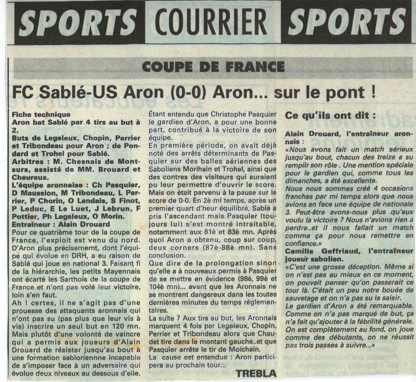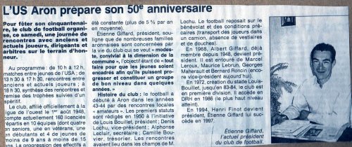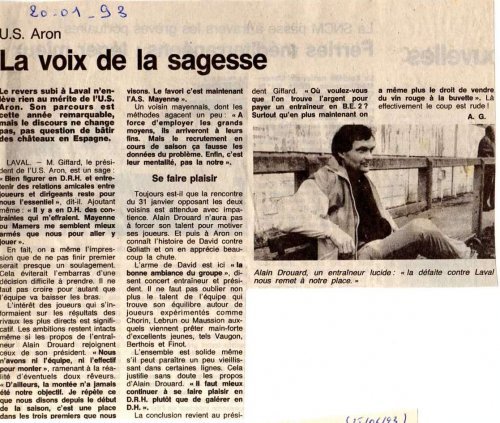 Au début des années 90, l'US ARON entame un long bail en DRH sous la houlette de Alain DROUARD et du Président RITON.