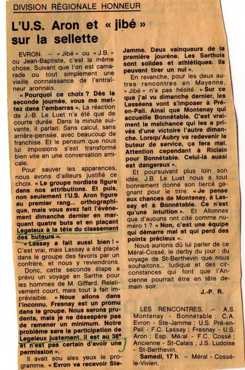 Des buteurs J LEBRUN, F MOTTAIS, S FINOT, JM MESNAGE, GAHERY. E LELUET, P CHORIN
