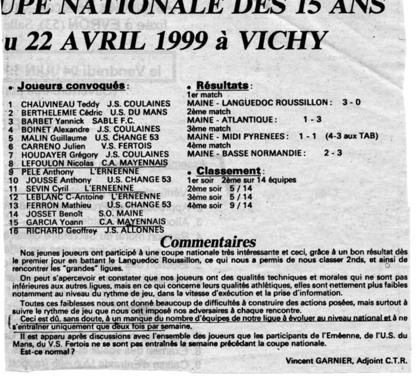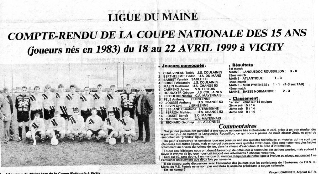 Des Ratissseurs de ballons infatigables : P LEGELEUX, BERTHOIS, O LANDAIS, C VANNIER, B BOUDET, O MORIN D RAIMBAULT. R PIEAU, P LEDUC