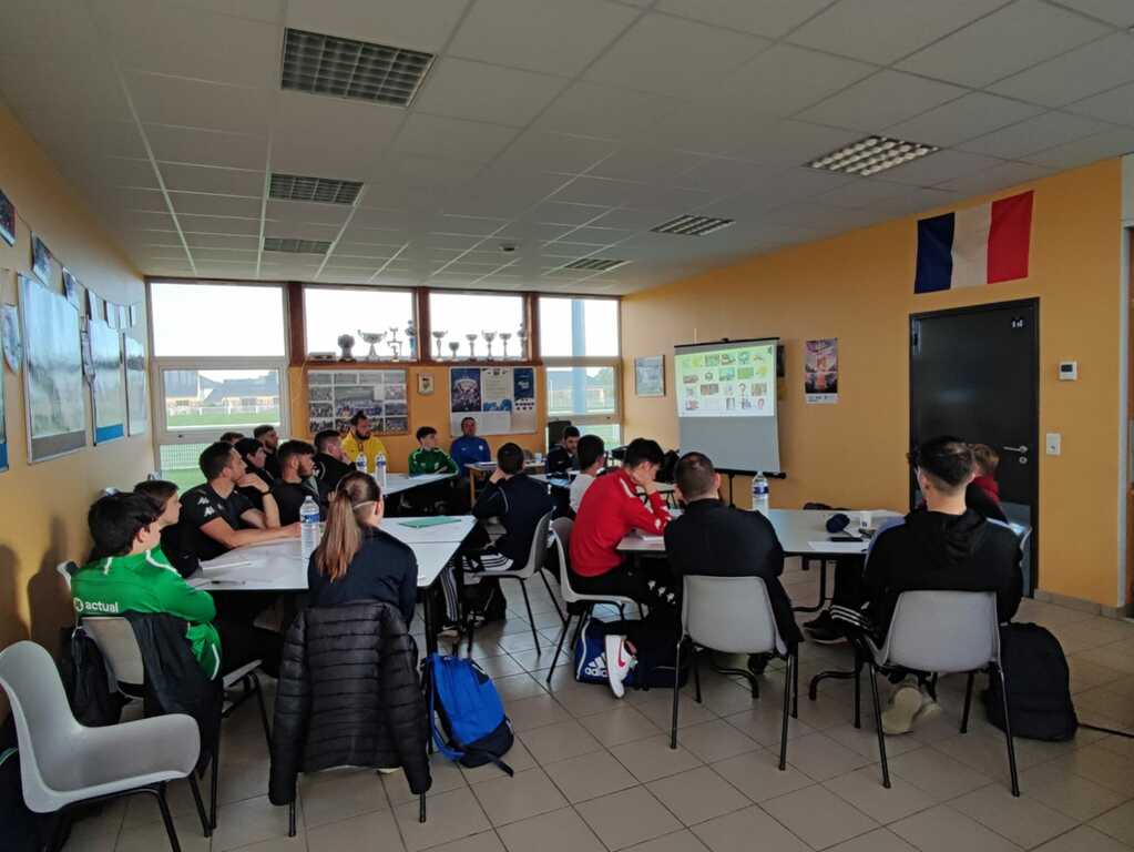 Un module U11 de formation a eu lieu les 21 et 22 avril à Aron. 20 stagiaires, issus majoritairement de clubs mayennais mais aussi de clubs des départements limitrophes, ont participé à ce module de seize heures. Cette formation a été encadrée par Mathieu Airault, Kévin Génissel et Valère Labbé. Les stagiaires ont pu alterner entre cours théoriques et travaux de groupes. Sur le terrain, la présence de jeunes joueurs de l’US Aronnaise a permis de faire deux groupes sur le terrain afin que chaque stagiaire puisse passer sur un des procédés pédagogiques. Merci : à la ville d’Aron pour la mise à disposition des infrastructures. au club de l’US Aronnaise pour l’accueil. aux joueurs de l’US Aronnaise pour leur participation aux différentes séquences proposées pas les stagiaires. Par Kévin GENISSEL