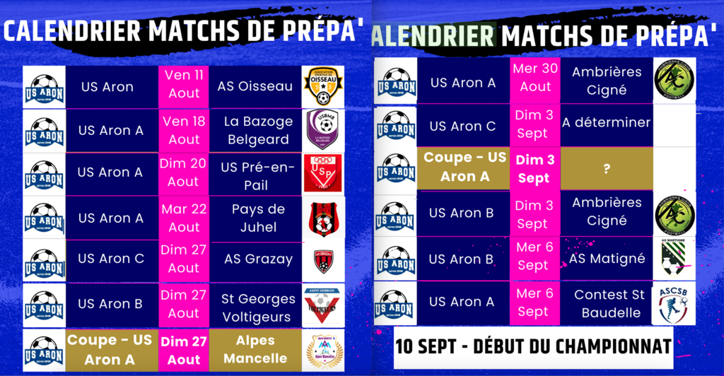 Premier match de Coupe de France le 27 aout contre les Alpes Mancelles, à Aron également ![]()