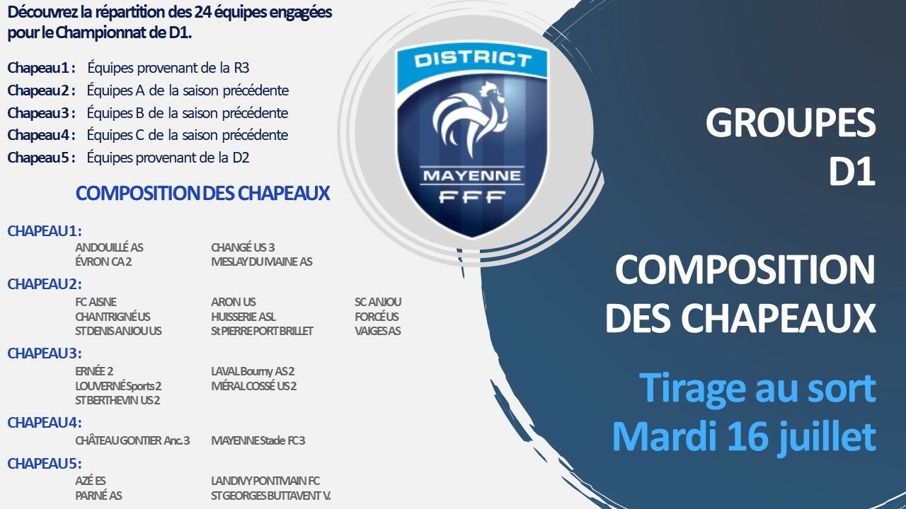 Le Tirage des Groupes D1 de déroule ce Mardi soir au siège du District. Gilles MAHIER et Serge GANDON seront nos représentants. Information à suivre...