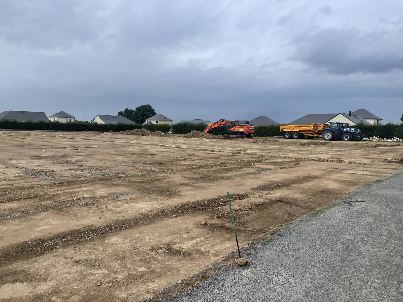 Depuis Juillet les travaux pour le terrain synthétique vont bon train Le Gazon, les buts et main courante ont disparu. La phase terrassement est en cours.